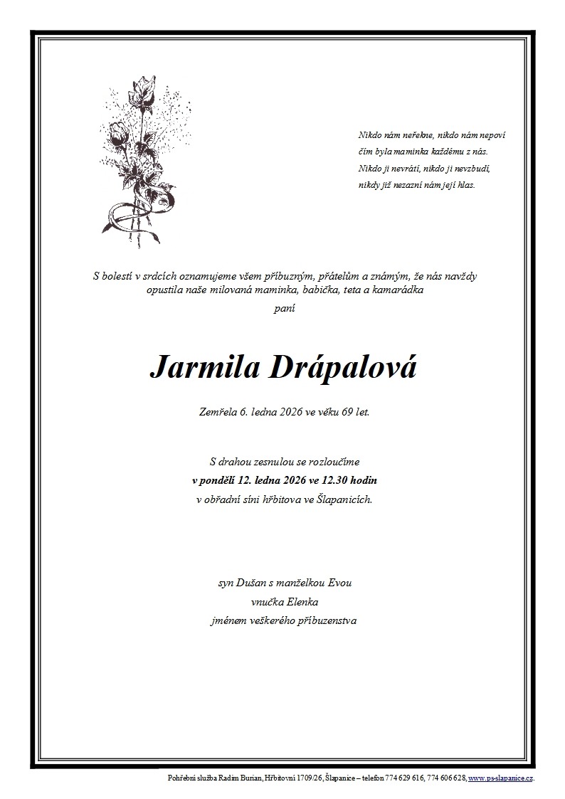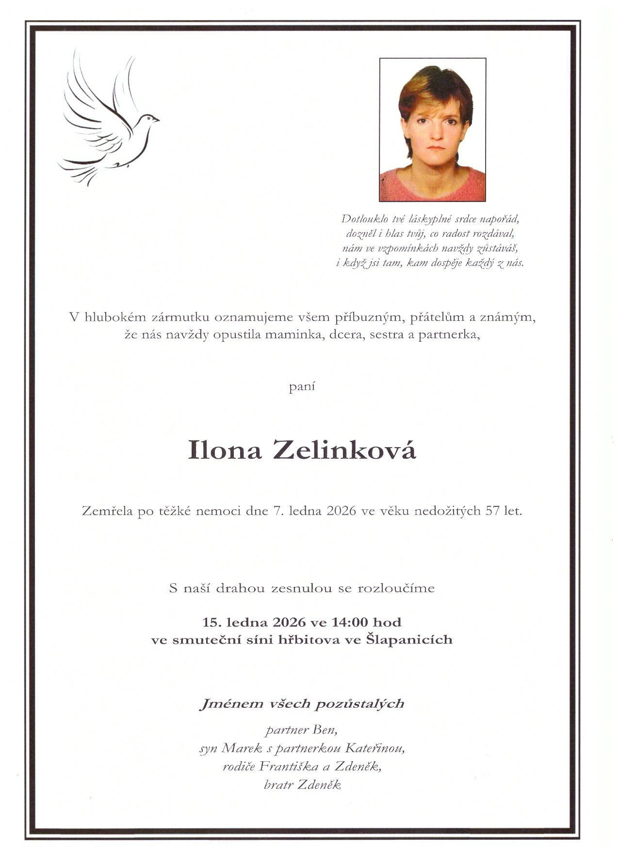 • fotografii zesnulého (pro smuteční oznámení – volitelné)